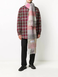 checked mohair-blend scarf Getting cold outside? No big deal. Take this cosy scarf from Acne Studios and cover yourself. In style, we mean. Highlights - Multicolour - Wool-blend - Horizontal stripe pattern - Fringed edge - Logo patch to the rear Made in Italy Composition Alpaca 33%, Wool 25%, Polyamide 22%, Mohair 20% SIZE & FIT Model measurements Height 6 ft 2 in(1.87 m) Bust/Chest 37.79 in(96 cm) Hips 37.79 in(96 cm) Waist 30.31 in(77 cm) Measurement LENGTH 98.42 in(250 cm) WIDTH 11.02 in(28 cm) Washing instructions Dry Clean Only