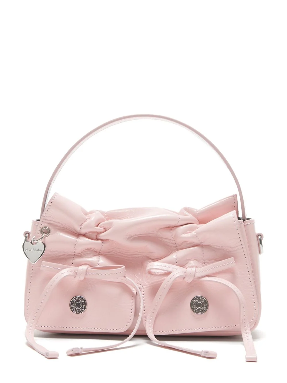 multipocket mini bag Highlights - Powder pink - Calf leather - Multiple pockets - Foldover top - Single top handle - Adjustable detachable shoulder strap - Logo-debossed strap - Bow detailing - Logo charm - Full lining Made in Italy Composition Outer: Calf Leather 100%