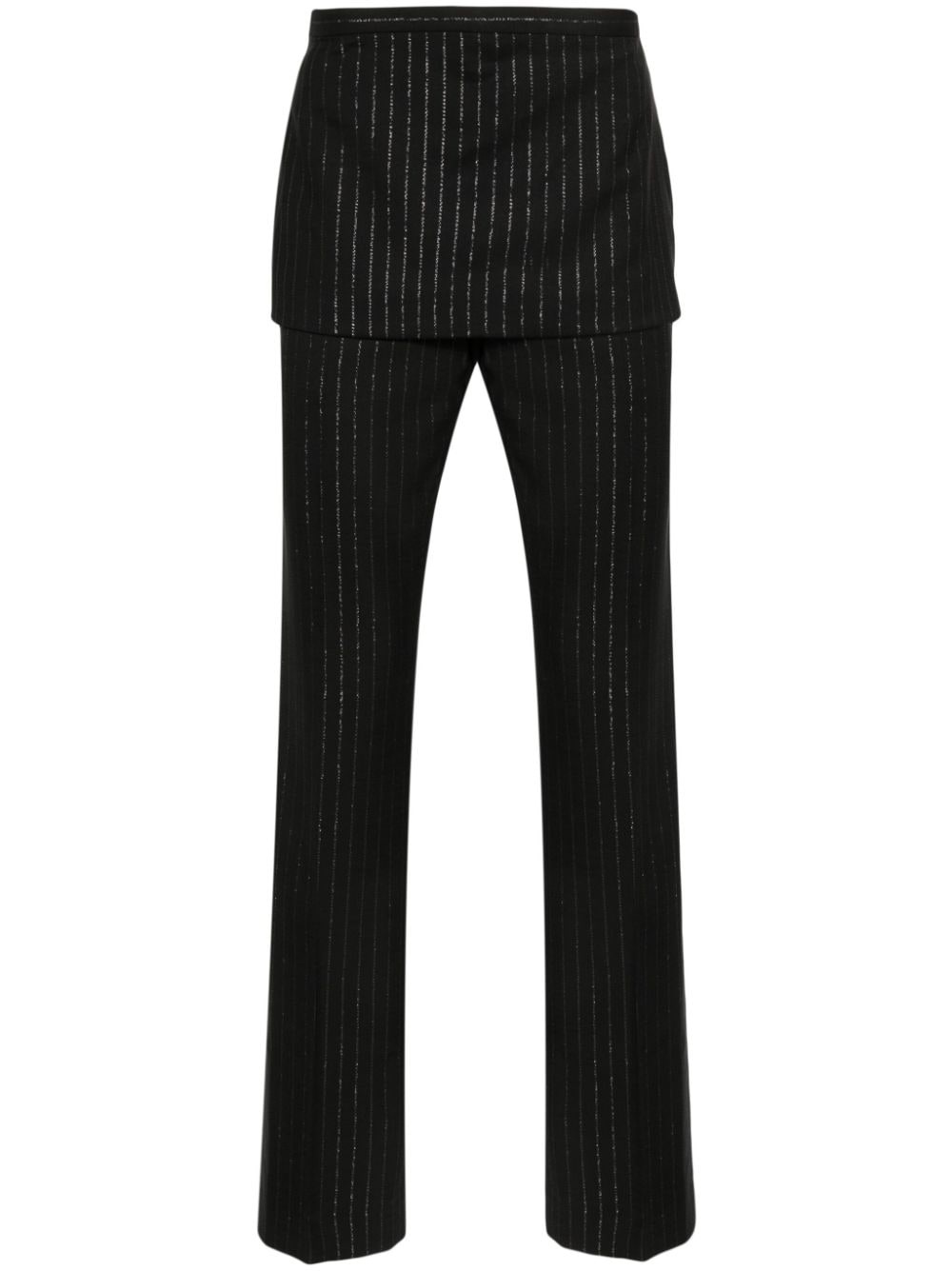 pinstripe-pattern trousers Highlights - Black - Twill weave - Metallic pinstripe pattern - Layered design to the front - Pressed crease - Two side inset pockets - Two rear welt pockets - Concealed side hook and zip fastening Imported Composition Outer: Polyester 56%, Wool 40%, Elastane 2%, Metallic Fibre 1% Lining: Organic Cotton 100%, Acetate 50%, Viscose 50% SIZE & FIT Model measurements Height 6 ft 1 in(1.86 m) Bust/Chest 36.61 in(93 cm) Hips 37 in(94 cm) Waist 28.74 in(73 cm) FittingInformation Designed for a straight-leg, allowing for an unrestricted and comfortable fit over the leg Made from a midweight stretch fabric, this piece offers elasticity and flexibility when worn This piece fits true to size – take your usual size Washing instructions Dry Clean Only