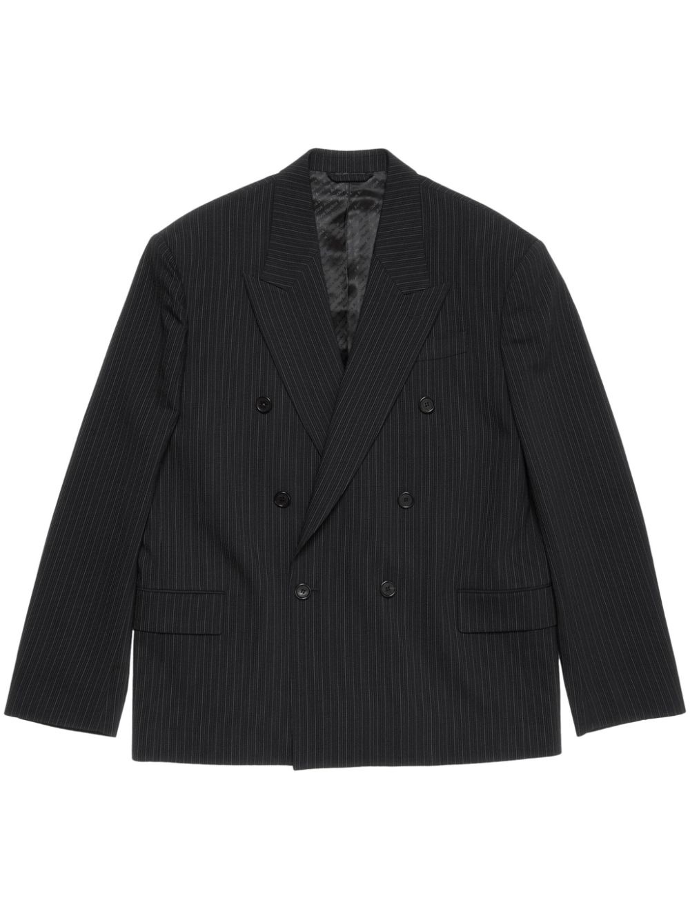 pinstriped blazer Highlights - Black - Double-breasted button fastening - Two side flap pockets Imported Composition Outer: Wool 74%, Cotton 24%, Spandex/Elastane 2% Lining: Acetate 50%, Viscose 50% Washing instructions Read Manufacturer Guidelines