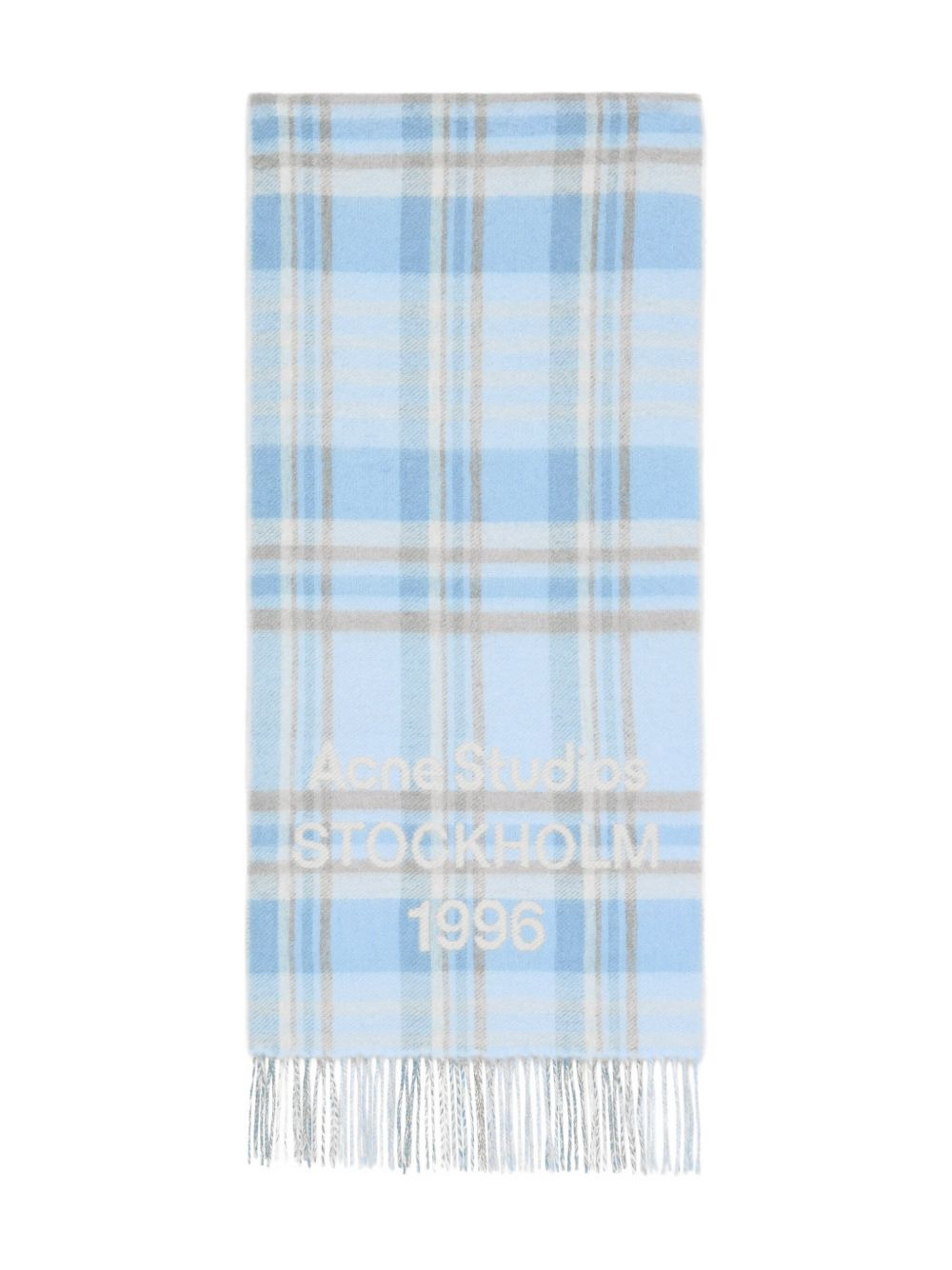 plaid fringed scarf Highlights - Aqua blue - Plaid pattern - Fringed edge - Logo detail Made in Italy Composition Wool 98%, Nylon 2% SIZE & FIT Measurement LENGTH 78.74 in(200 cm) WIDTH 15.74 in(40 cm)
