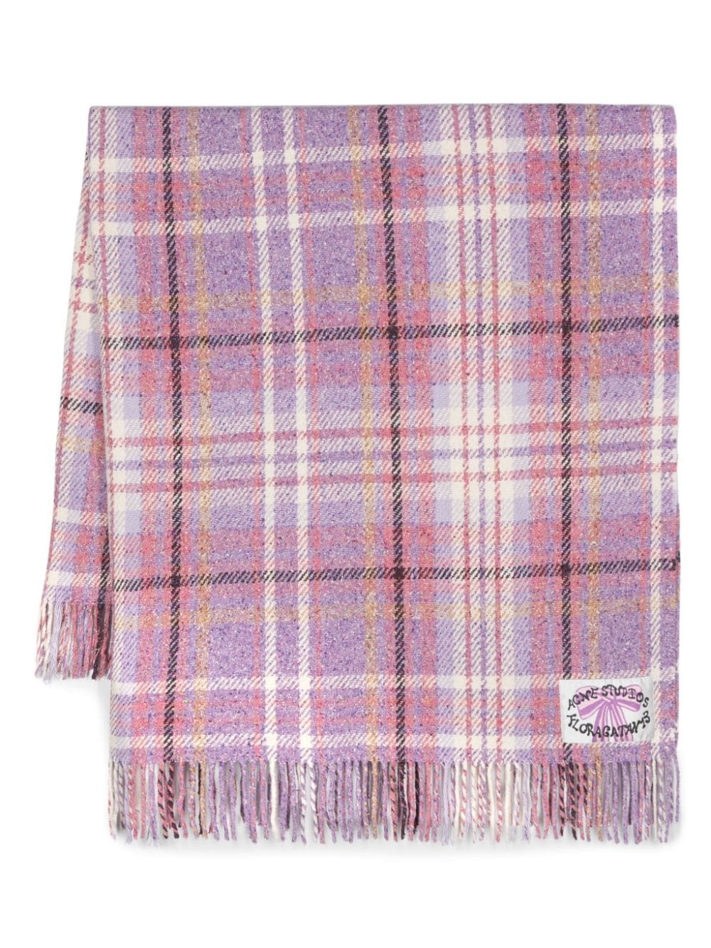 plaid knitted scarf Highlights - Violet purple/multicolour - Chunky knit - Plaid check pattern - Fringed edge Made in Italy Composition Wool 41%, Nylon 27%, Silk 22%, Cotton 8%, Polyester 2% SIZE & FIT Measurement LENGTH 68.89 in(175 cm) WIDTH 57.08 in(145 cm)