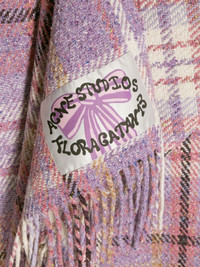 plaid knitted scarf Highlights - Violet purple/multicolour - Chunky knit - Plaid check pattern - Fringed edge Made in Italy Composition Wool 41%, Nylon 27%, Silk 22%, Cotton 8%, Polyester 2% SIZE & FIT Measurement LENGTH 68.89 in(175 cm) WIDTH 57.08 in(145 cm)