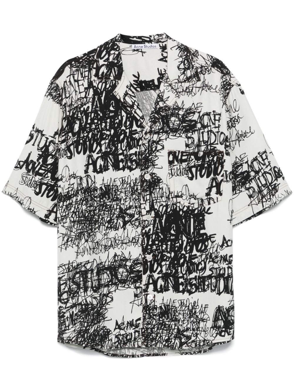 printed button-up shirt Highlights - White/black - Textured finish - Graffiti print - Front button fastening - Notched collar - Short sleeves - Chest patch pocket - Curved hem Imported Composition Viscose 100% Washing instructions Dry Clean Only