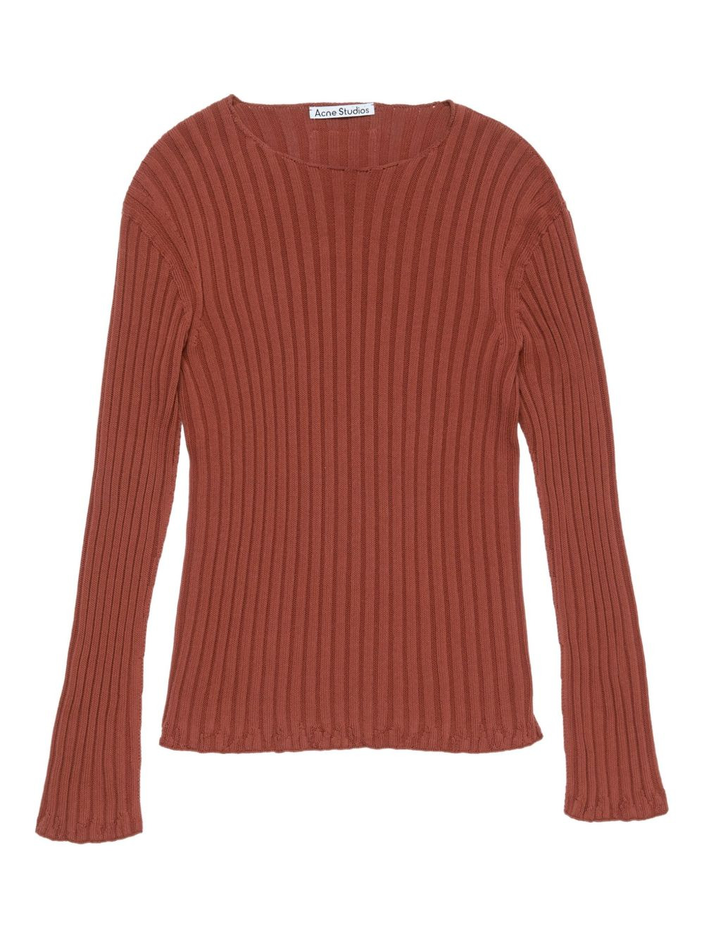 ribbed cotton sweater Highlights - Terracotta red - Ribbed texture - Long sleeves - Crew neck - Straight hem Imported Composition Cotton 100% Washing instructions Read Manufacturer Guidelines