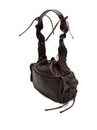 ruffled drawstring shoulder bag Highlights - Brown - Textured leather - Drawstring closure - Ruffled shoulder strap - Logo charm Made in Italy Composition Outer: Lambskin 100% Lining: Polyester 50%, Polyurethane 50% SIZE & FIT Measurement DEPTH 5.9 in(15 cm) HEIGHT 9.84 in(25 cm) STRAP 31.49 in(80 cm) WIDTH 10.43 in(26.5 cm)