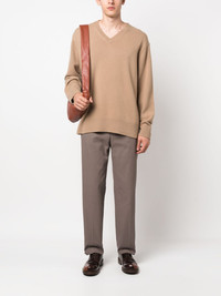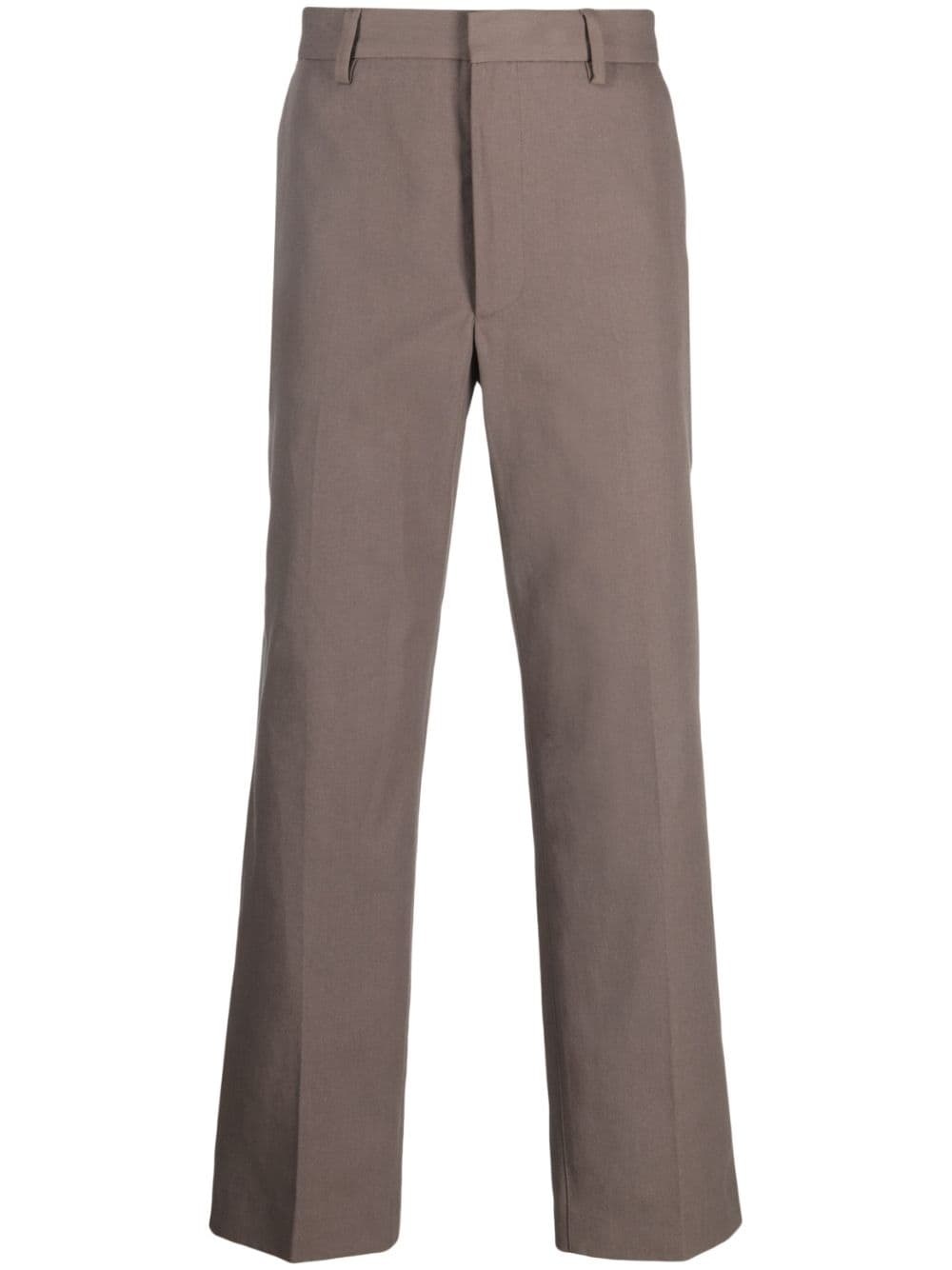 straight-leg tailored trousers Highlights - Brown - Cotton blend - Tailored cut - Concealed front fastening - Straight leg - Two side inset pockets - Rear patch pocket - Ankle-length Imported Composition Outer: Cotton 50%, Polyester 50% Lining: Cotton 100% SIZE & FIT Model measurements Height 6 ft 2 in(1.87 m) Bust/Chest 36.41 in(92.5 cm) Hips 35.43 in(90 cm) Waist 29.52 in(75 cm) Measurement INSIDE LEG 28.74 in(73 cm) FRONT RISE 10.43 in(26.5 cm) WAIST 29.92 in(76 cm) FittingInformation Designed for a straight-leg, allowing for an unrestricted and comfortable fit over the leg Made from a midweight non-stretch fabric This piece fits true to size – take your usual size