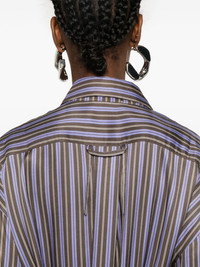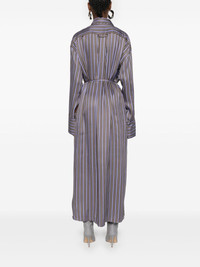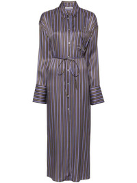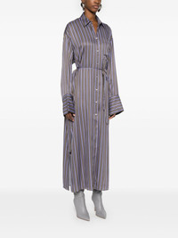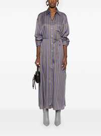 striped midi shirt dress Highlights - Brown/purple/white - Vertical stripe pattern - Classic collar - Drop shoulder - Long sleeves with buttoned cuffs - Chest patch pocket - Embroidered logo at the chest - Detachable belt - Two side inset pockets - Side slits - Front button fastening Imported Composition Viscose 100% SIZE & FIT Model measurements Height 5 ft 10 in(1.77 m) Bust/Chest 29.92 in(76 cm) Hips 34.25 in(87 cm) Waist 23.62 in(60 cm) FittingInformation Designed to be unstructured, offering a loose fit throughout The belt offers adjustability for fitted preferences Made from a midweight non-stretch fabric This piece fits true to size – take your usual size Washing instructions Dry Clean Only
