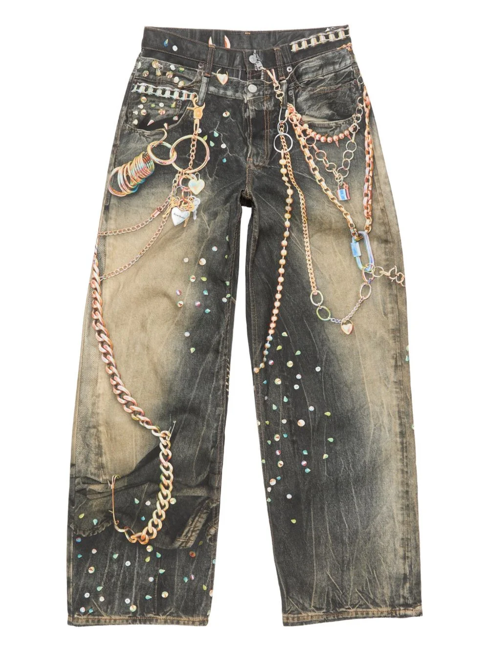 trompe l'oeil print jeans Highlights - Dark grey - Trompe l'oeil chain print - Belt loops - Button fastening Made in Italy Composition Fabric 100% Washing instructions Read Manufacturer Guidelines