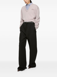 v-neck embroidered sweater Highlights - Light purple - V-neck - Embroidered detail - Ribbed knit - Long sleeves - Cropped Imported Composition Yak 50%, Wool 50% Washing instructions Dry Clean Only