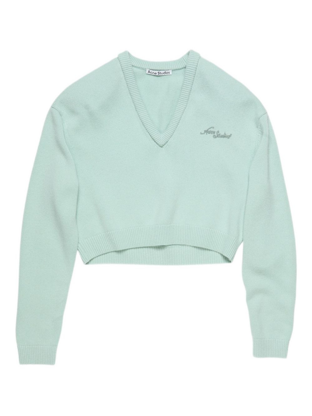 v-neck embroidery-logo sweatshirt Highlights - Light green - V-neck - Embroidered detail - Long sleeves - Cropped style Imported Composition Yak 50%, Wool 50% Washing instructions Read Manufacturer Guidelines