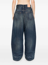 wide-leg jeans Highlights - Indigo blue - Organic cotton-recycled cotton blend - Denim - Faded effect - Whiskering effect - Logo patch to the rear - Contrast stitching - Wide leg - High-rise - Button fly fastening - Belt loops - Classic five pockets - Straight hem Made in Italy Composition Calf Leather 100%, Organic Cotton 80%, Recycled Cotton 20% SIZE & FIT Model measurements Height 5 ft 10 in(1.77 m) Bust/Chest 33.85 in(86 cm) Hips 37 in(94 cm) Waist 26.37 in(67 cm) FittingInformation Designed with a wide leg cut, these jeans allow for a close fit at the waist and offer a loose and roomy fit over the leg Sturdy and hard-wearing, this denim piece offers no stretch This piece fits true to size – take your usual size