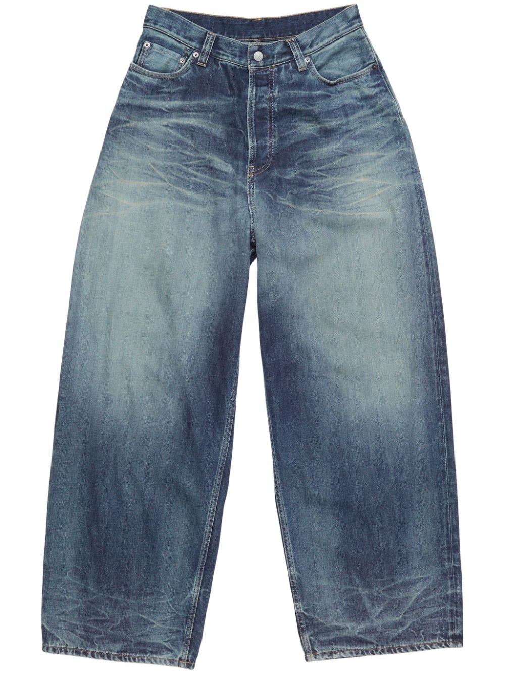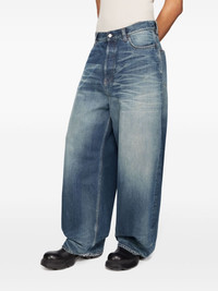 wide-leg jeans Highlights - Navy blue - Organic cotton blend - Washed denim - Bleached effect - Whiskering effect - Concealed fly and button fastening - Mid-rise - Belt loops - Rivet detailing - Classic five pockets - Leather tag - Wide leg - Long length Made in Italy Composition Calf Leather 100%, Organic Cotton 80%, Recycled Cotton 20% SIZE & FIT FittingInformation Designed with a wide leg, these jeans offer a loose and roomy fit Sturdy and hard-wearing, this denim piece offers no stretch