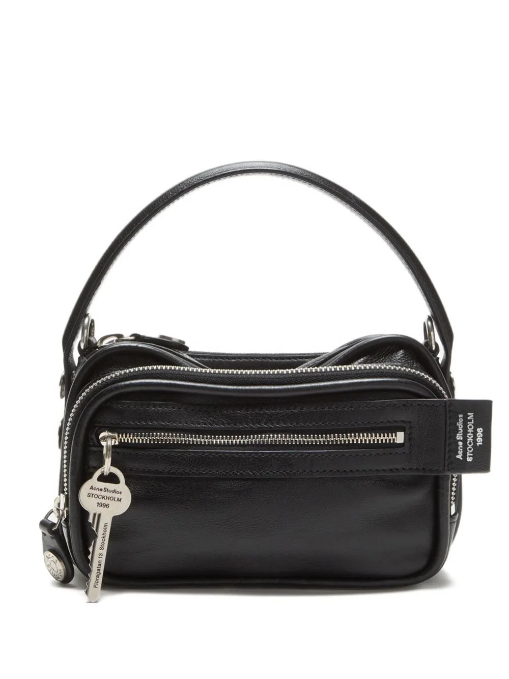 zip-fastening shoulder bag Highlights - Black - Single top handle - Detachable shoulder strap - Zip fastening - Silver-tone hardware - Key charm Made in Italy Composition Lining: Polyester 50%, Polyurethane 50% Outer: Calf Leather 100% SIZE & FIT Measurement DEPTH 4.33 in(11 cm) HANDLE 4.72 in(12 cm) WIDTH 7.87 in(20 cm)