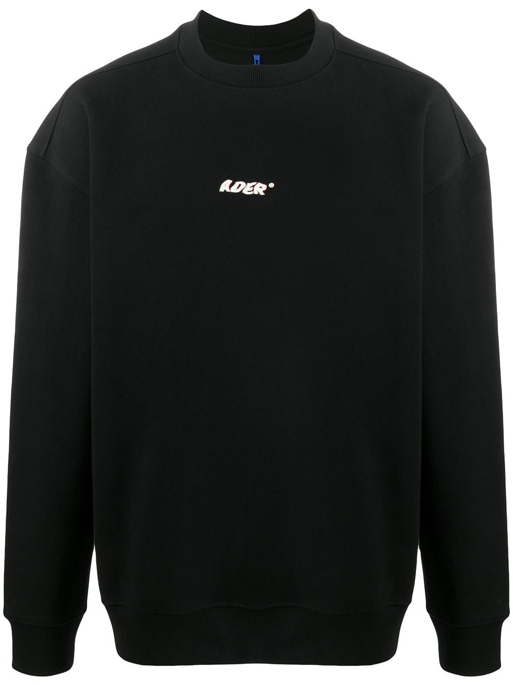 logo print sweatshirt Black cotton blend logo print sweatshirt from ADER error featuring a crew neck, long sleeves and a straight hem. Imported Composition Cotton 76%, Polyester 24% SIZE & FIT Model measurements Height 6 ft 2 in(1.87 m) Bust/Chest 36.41 in(92.5 cm) Hips 37 in(94 cm) Waist 29.52 in(75 cm) FittingInformation This piece fits true to size. We recommend you get your regular size Cut for a loose fit Made with a mid-weight fabric Washing instructions Hand Wash