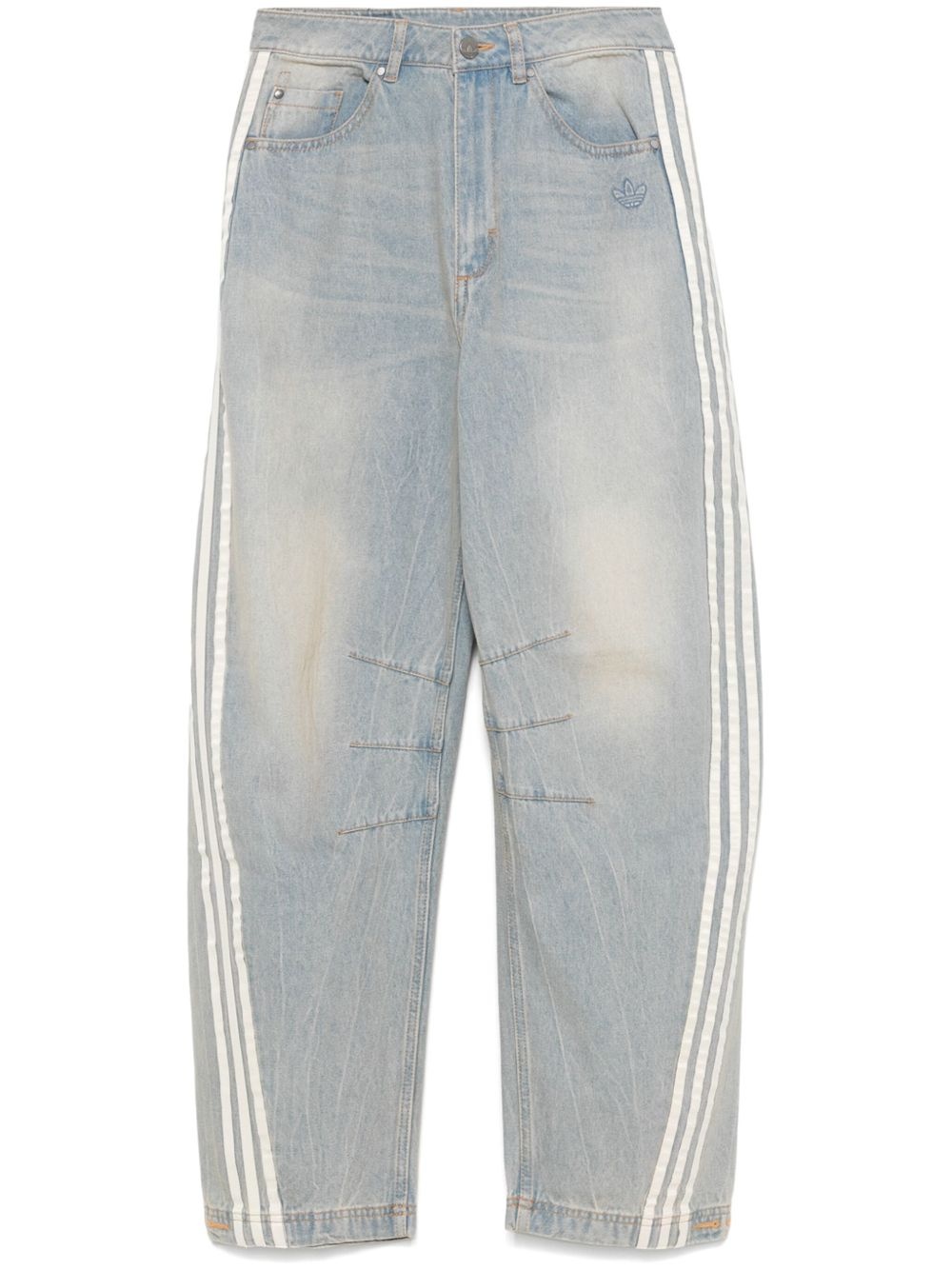 3-stripe jeans Highlights - Light blue - Concealed fly and button fastening - Belt loops - Classic five pockets - Signature trefoil logo detail Imported Composition Cotton 100% SIZE & FIT Model measurements Height 5 ft 10 in(1.78 m) Bust/Chest 32.67 in(83 cm) Hips 35.43 in(90 cm) Waist 23.22 in(59 cm) FittingInformation Designed for a tapered fit, these jeans allow a close fit at the waist and a loose unrestricted fit over the leg with a closer fit towards the ankle Sturdy and hard-wearing, this denim piece offers no stretch Washing instructions Machine Wash