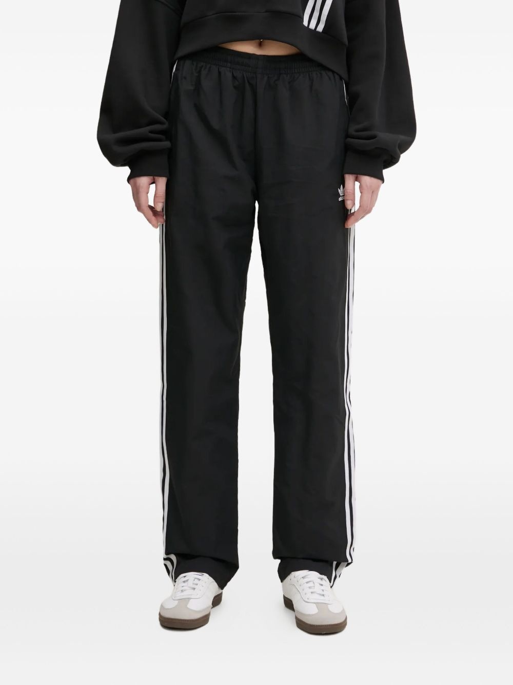 3-stripe logo track pants Highlights - Black - 3-stripe logo - Elasticated waistband - Zip ankle fastening - Straight leg Imported Composition Cotton 100%, Polyamide 100% Washing instructions Read Manufacturer Guidelines