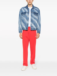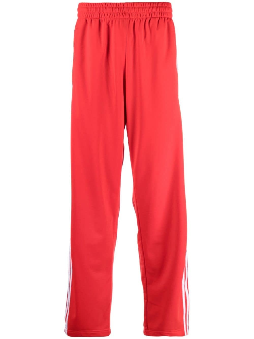 3-Stripes straight-leg trousers Highlights - Bright red - Recycled polyester - Signature 3-stripes logo - Elasticated waistband - Two side zip-fastening pockets - Straight leg - Ankle zips - Straight hem Imported Composition Recycled Polyester 100% SIZE & FIT Model measurements Height 6 ft 2 in(1.87 m) Bust/Chest 36.41 in(92.5 cm) Hips 35.43 in(90 cm) Waist 29.52 in(75 cm) FittingInformation Designed for a relaxed straight leg, allowing a comfortable and loose fit over the leg The elasticated waist allows for a comfortable fit Made from a midweight non-stretch fabric This piece fits true to size – take your usual size Washing instructions Machine Wash