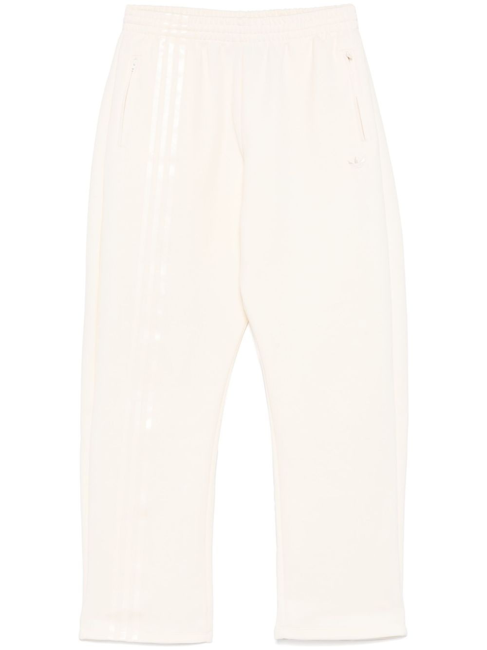3-stripes track pants Highlights - White - Elasticated waistband with internal drawstring - Two side zip-fastening pockets - Signature trefoil logo detail Imported Composition Cotton 53%, Recycled Polyester 47% SIZE & FIT Model measurements Height 5 ft 10 in(1.79 m) Bust/Chest 31.88 in(81 cm) Hips 35.43 in(90 cm) Waist 23.62 in(60 cm) FittingInformation Designed with a wide-leg cut, these trousers allow for a close fit at the waist and offer a loose and roomy fit over the leg Adjust this piece’s waistband to your preference using the drawstring Made from a midweight non-stretch fabric, this piece offers minimal elasticity when worn