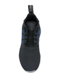 NMD R2 "Noble Indigo" sneakers Adidas' NMD collection is centered on creating progressive designs which harness the label's pioneering technologies and forward-thinking approach. This pair of Originals NMD_R2 sneakers merge the laidback nuance of an everyday sneaker with the distinctive innovation the brand is known for. Presented in black and blue, the NMD_R2 sneakers boast a stretchy mesh upper complete with premium leather paneling at the heel counter and tongue. Benefiting from the label's ultra-responsive Boost midsole, these low top sneakers feature a round toe, a lace-up front fastening and a branded pull tab at the heel. Imported Composition Sole: Rubber 100% Outer: Polyamide 100% Lining: Polyamide 100% SIZE & FIT Measurement Sole height 0.59 in(1.5 cm) HEEL 1.37 in(3.5 cm)