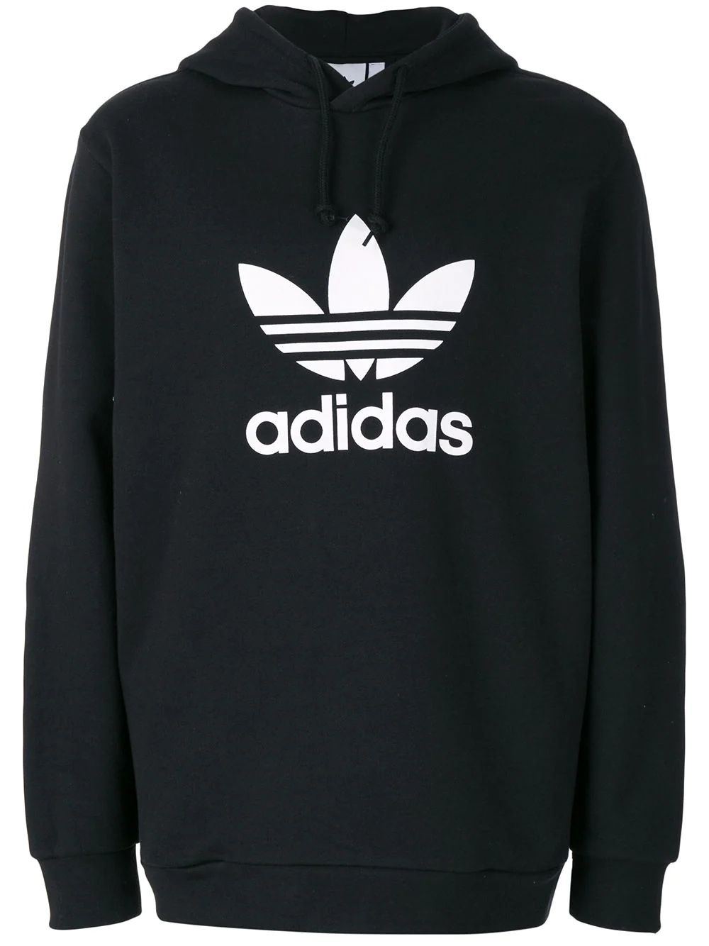 Adidas Originals Trefoil hoodie Matching innovation with style, Adidas Originals create prime sportswear pieces for flawless performance on and off the court. Crafted from pure cotton jersey in a classic black palette, this Trefoil hoodie features a drawstring hood, long sleeves, a ribbed hem and cuffs and a central printed logo. Imported Composition Cotton 100% SIZE & FIT Model measurements Height 6 ft 2 in(1.87 m) Bust/Chest 37.79 in(96 cm) Hips 37.79 in(96 cm) Waist 30.31 in(77 cm) Washing instructions Machine Wash