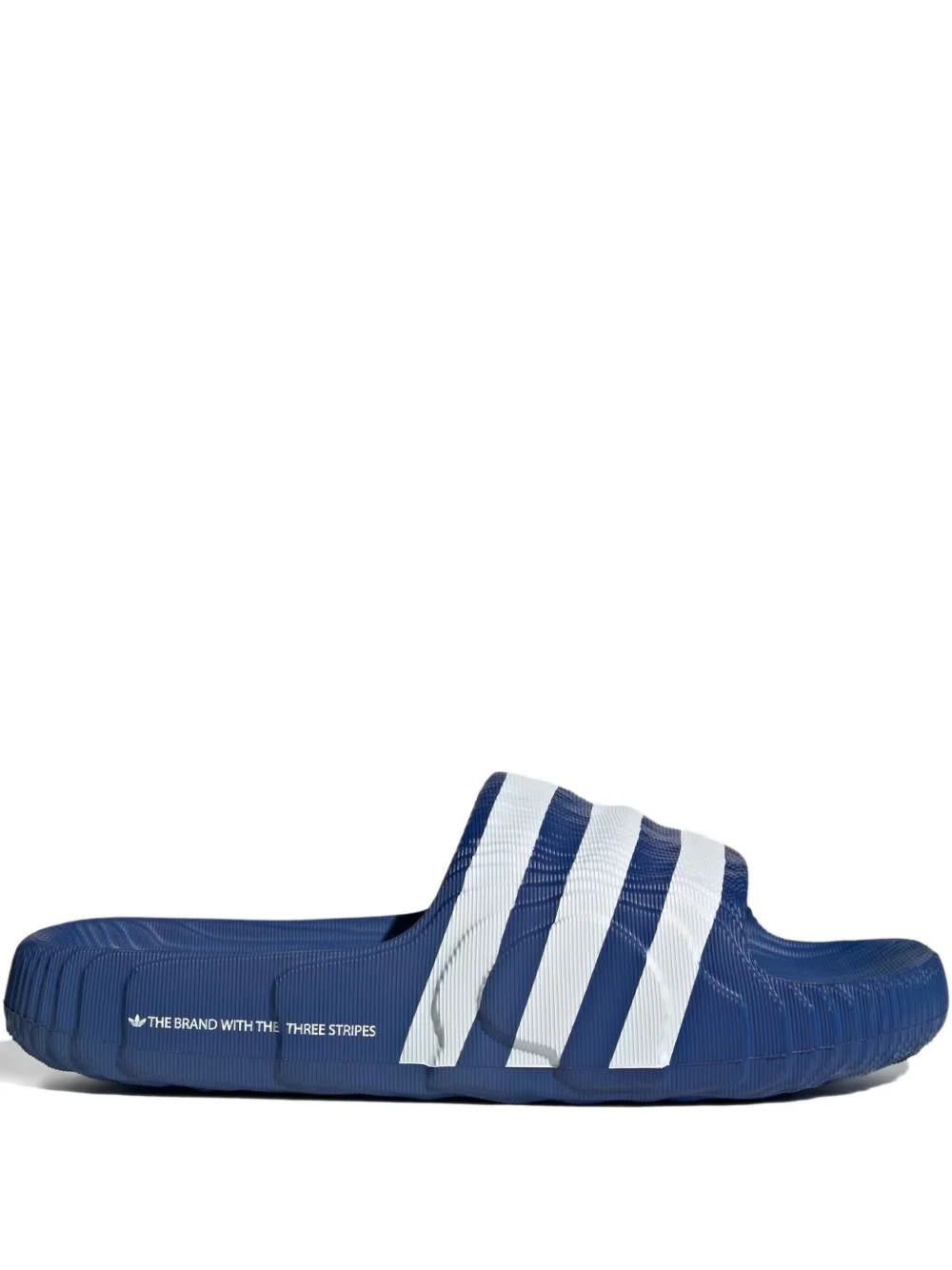 Adilette 22 striped slides Highlights - Royal blue - Signature three stripes - Textured effect - Ripple sole Imported Composition Outer: Rubber 100% Lining: Rubber 100% Sole: Rubber 100%