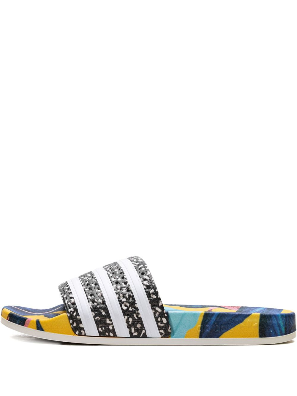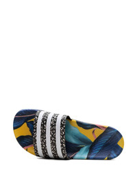 ADILETTE "Black" slides Highlights - Black - Three stripes logo - Floral print - Open toe - Slip-on style - Flat sole Imported Composition Sole: Rubber 100% Lining: Rubber 100% Outer: Rubber 100%