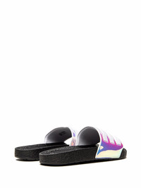 Adilette Boost slides A poolside essential or a gym companion, these adidas Adilette Boost slides come with a silver-tone and black colour palette. They're constructed with an energy-returning Boost midsole, a little gift from the world of running technology that guarantees comfort and relaxation on any occasion. Highlights - Silver-tone - Signature 3-stripes logo - Open toe - Slip-on style - Branded insole - Rubber sole Imported Composition Outer: Rubber 100% Lining: Rubber 100% Sole: Rubber 100%