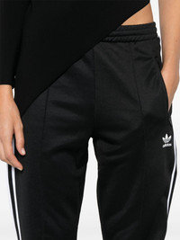 Beckenbauer sweatpants Highlights - Black - Recycled cotton blend - Technical jersey - Elasticated waistband with internal drawstring - Signature 3-stripes logo - Raised seam detail - Two side zip-fastening pockets - Straight leg Imported Composition Recycled Cotton 52%, Recycled Polyester 48% SIZE & FIT Model measurements Height 5 ft 10 in(1.78 m) Bust/Chest 33.85 in(86 cm) Hips 36.61 in(93 cm) Waist 26.77 in(68 cm) FittingInformation Designed for a slim fit, these trousers offer a close fit at the waist, allowing a comfortable close fit and some movement over the leg Adjust this piece’s waistband to your preference using the drawstring Made from a midweight non-stretch fabric, this piece offers minimal elasticity when worn Washing instructions Machine Wash