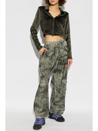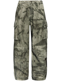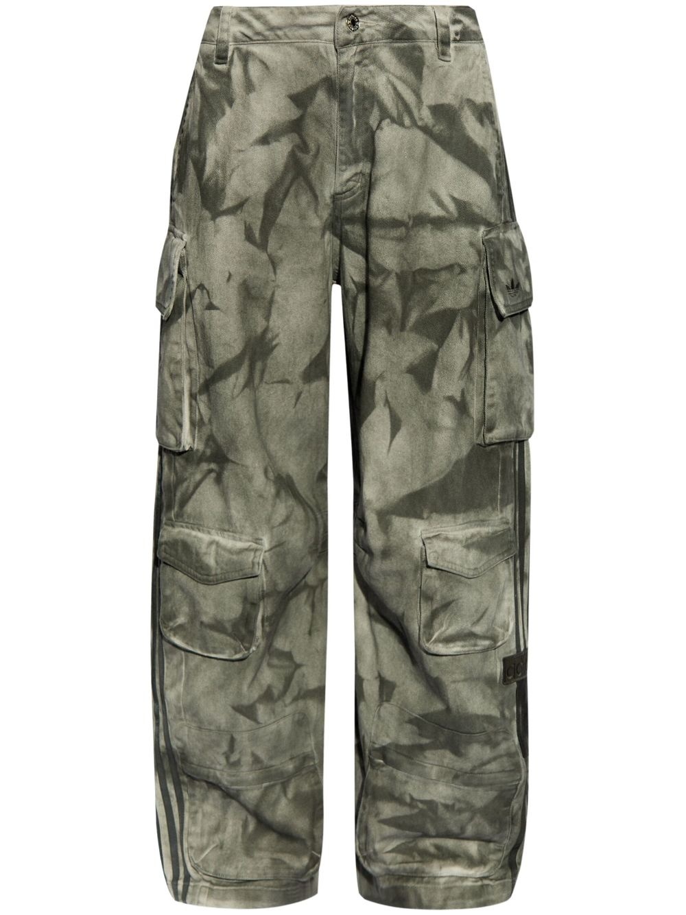 camouflage-print cargo trousers Highlights - Green - Cotton - Camouflage print - Concealed fly and button fastening - Signature 3-stripes logo - Applique logo - Belt loops - Two side inset pockets - Multiple cargo pockets - High-waisted - Wide leg Imported Composition Cotton 100%