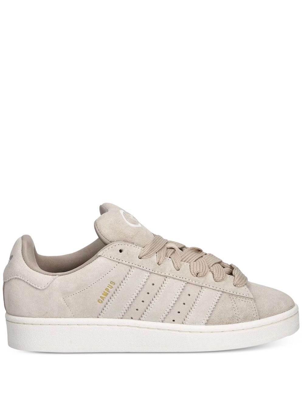 Campus sneakers Highlights - Beige - Front lace-up fastening - Signature 3-stripes logo - Perforated detailing - Round toe Imported Composition Outer: Fabric 100%, Calf Suede 100% Sole: Rubber 100% Lining: Fabric 100%