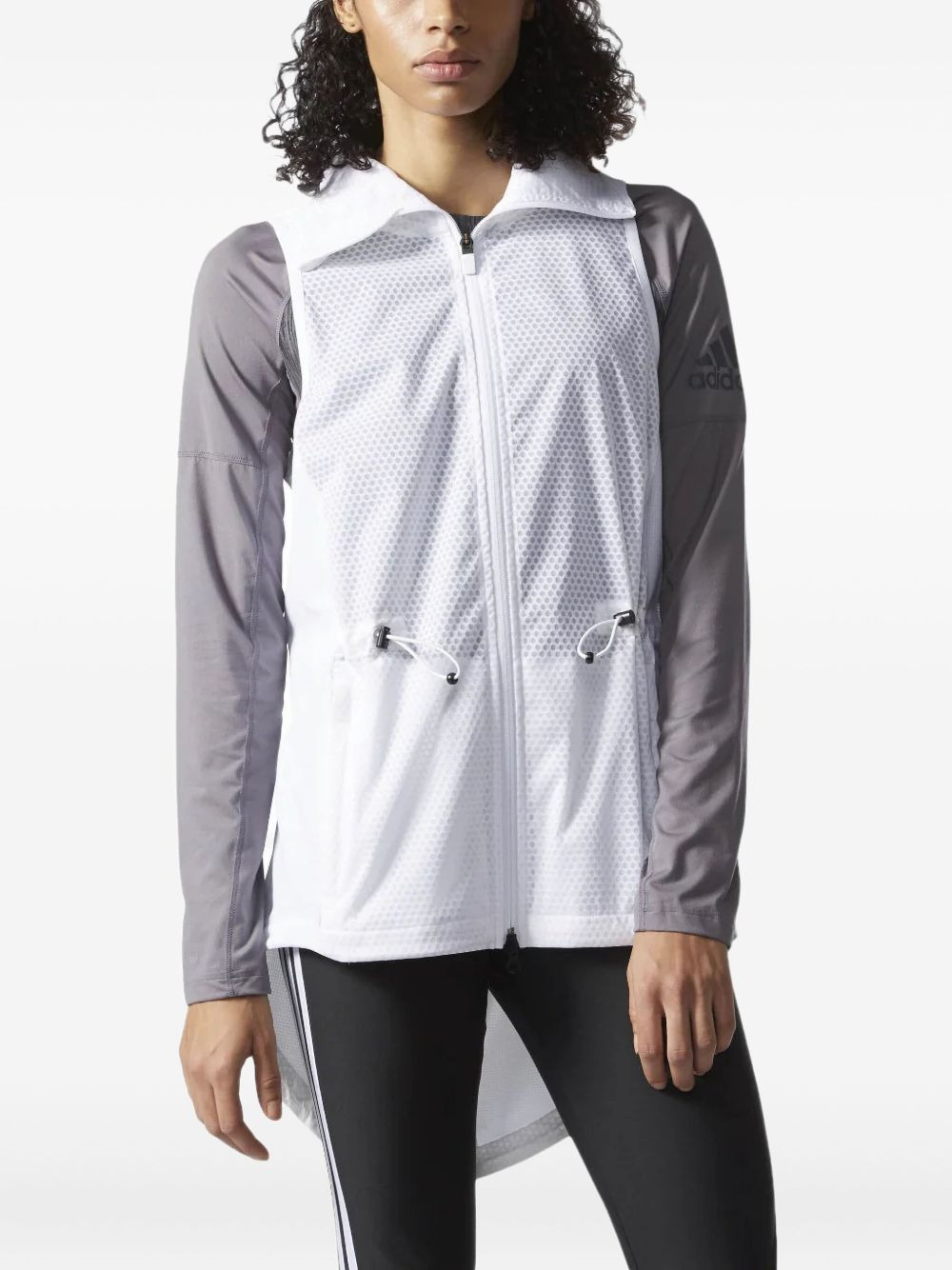 Climsatorm mesh-panel vest Highlights - White - Mesh panel - Front zip fastening - Spread collar - Drawstring hem - Longline length Imported Composition Polyester 100% Washing instructions Read Manufacturer Guidelines
