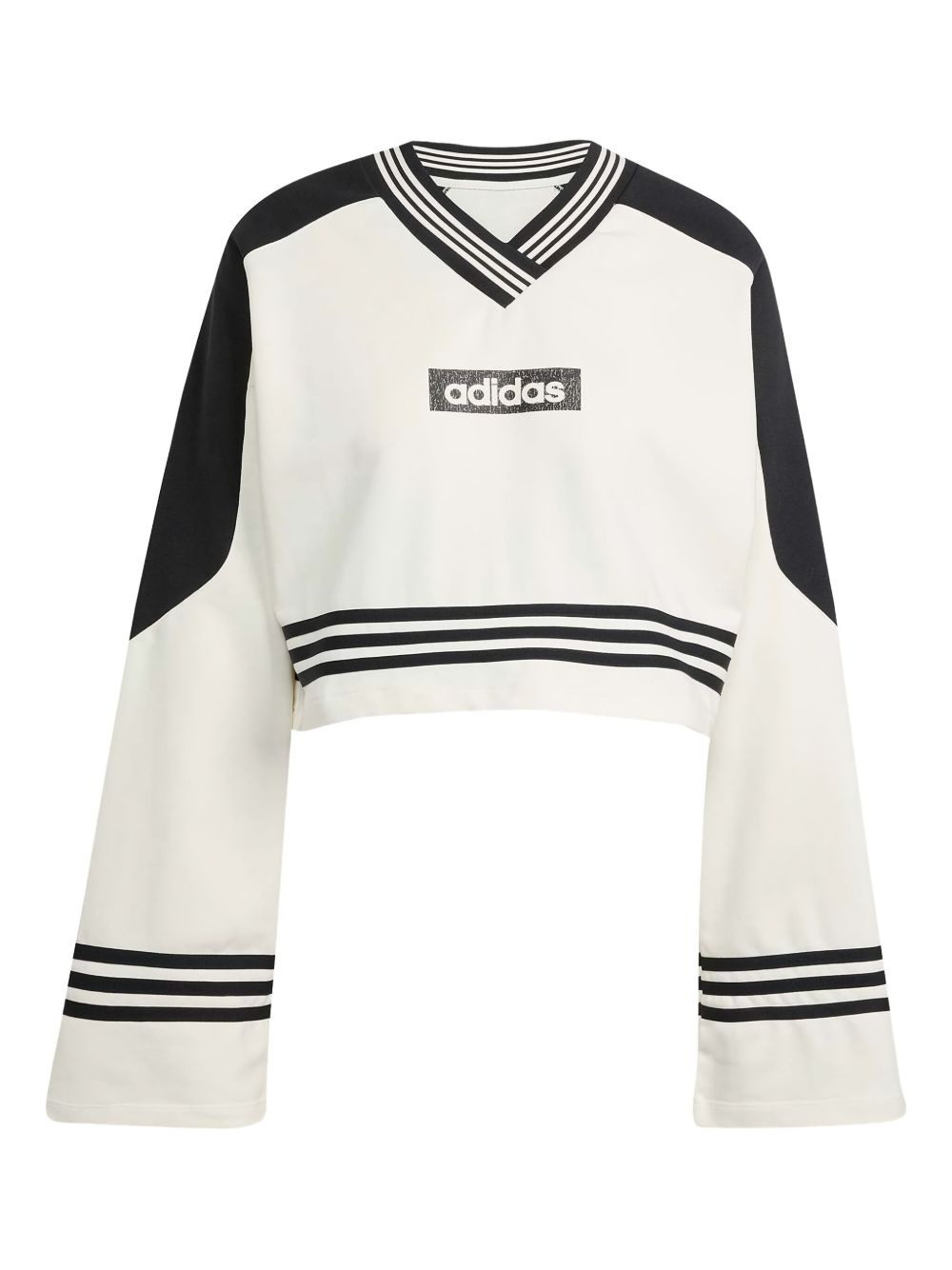 crew-neck sweatshirt Highlights - White/black - V-neck - Wide long sleeves - Logo-print at the chest - Stripe detailing Imported Composition Cotton 61%, Recycled Polyester 39% Washing instructions Read Manufacturer Guidelines