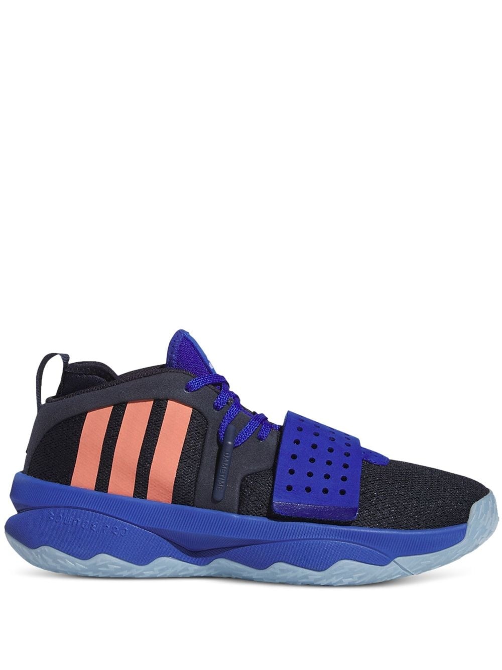 Dame 8 EXTPLY "Black" sneakers Highlights - Black/royal blue - Front touch-strap over lace-up fastening - Pull-tab at the heel - Signature 3-stripes logo - Logo patch at the tongue - Round toe - Padded ankle - Branded insole - Internal sock construction - Tpu propulsion plate - Signature bounce pro midsole - Rubber outsole - These styles are supplied by a premium and authenticated sneaker marketplace. stocking only the most sought-after footwear, they source and curate some of the most hard to find sneakers from around the world. Imported Composition Sole: Rubber 100% Outer: Fabric 100%, Thermoplastic Polyurethane (TPU) 100% Lining: Fabric 100%