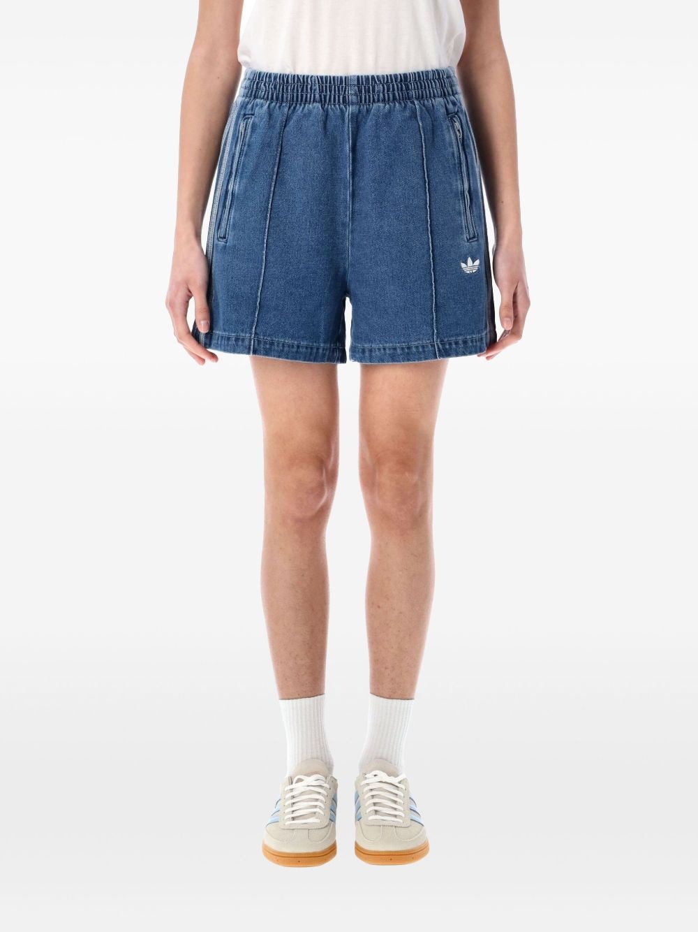 denim shorts Highlights - Indigo blue - Elasticated waistband - Two side zip-fastening pockets - Signature trefoil logo detail - Signature 3-stripes logo Imported Composition Cotton 100% Washing instructions Read Manufacturer Guidelines