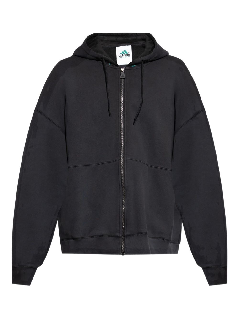 fleece zip-up hoodie Highlights - Black - Front zip fastening - Drawstring hood - Drop shoulder - Ribbed cuffs and hem Imported Composition Cotton 97%, Elastane 3%