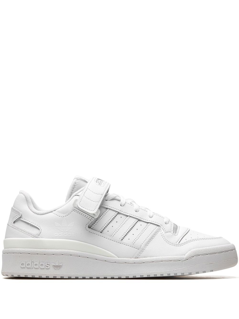 Forum Low ''Triple White'' sneakers Adidas presents the Forum Low sneakers - in an all-white colour. Inspired by basketball shoes, this pair features a low-cut, crafted from leather and is completed by a front touch strap fastening for a perfect fit. Underneath, a rubber sole adds comfort to the design. Imported Composition Leather 100%