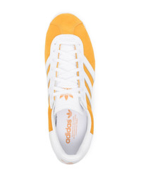 Gazelle 85 suede sneakers Highlights - Mustard yellow - Suede - Leather trim - Round toe - Logo-embossed tongue - Signature 3-stripes logo - Contrasting branded heel counter - Branded insole - Flat rubber sole - Front lace-up fastening Imported Composition Outer: Calf Leather 100% Sole: Rubber 100% Lining: Calf Leather 100%, Fabric 100% SIZE & FIT Measurement Sole height 0.78 in(2 cm)