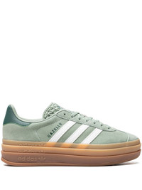 Gazelle Bold "Silver Green Gum" sneakers adidas' iconic Gazelle sneakers are reimagined with a bold twist. Rendered in light green suede, the low-top pair maintains its original serrated 3-Stripes logo and golden 'Gazelle' lettering on the sides, while a platform gum rubber sole elevates the retro-inspired silhouette. Highlights - Light green - Leather/suede - Debossed logo to the side - Signature 3-stripes logo - Contrasting heel counter - Round toe - Front lace-up fastening - Logo-print tongue - Branded insole - Gum-rubber sole - Platform sole - These styles are supplied by a premium sneaker marketplace. stocking only the most sought-after footwear, they source and curate some of the most hard to find sneakers from around the world. Imported Composition Leather 100% SIZE & FIT Measurement HEEL 1.37 in(3.5 cm) Sole height 1.18 in(3 cm)