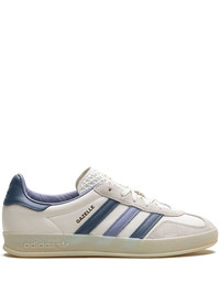 Gazelle leather sneakers Highlights - White/prussian blue/lavender purple - Calf leather - Panelled design - Suede panelling - Signature 3-stripes logo - Signature trefoil logo detail - Stamped detail - Logo-print tongue - Branded heel counter - Logo at the sole - Round toe - Front lace-up fastening - Leather lining - Branded insole - Flat rubber sole Imported Composition Sole: Rubber 100% Outer: Calf Leather 100%, Calf Suede 100% Lining: Fabric 100% SIZE & FIT Measurement HEEL 0.98 in(2.5 cm) Sole height 0.59 in(1.5 cm)
