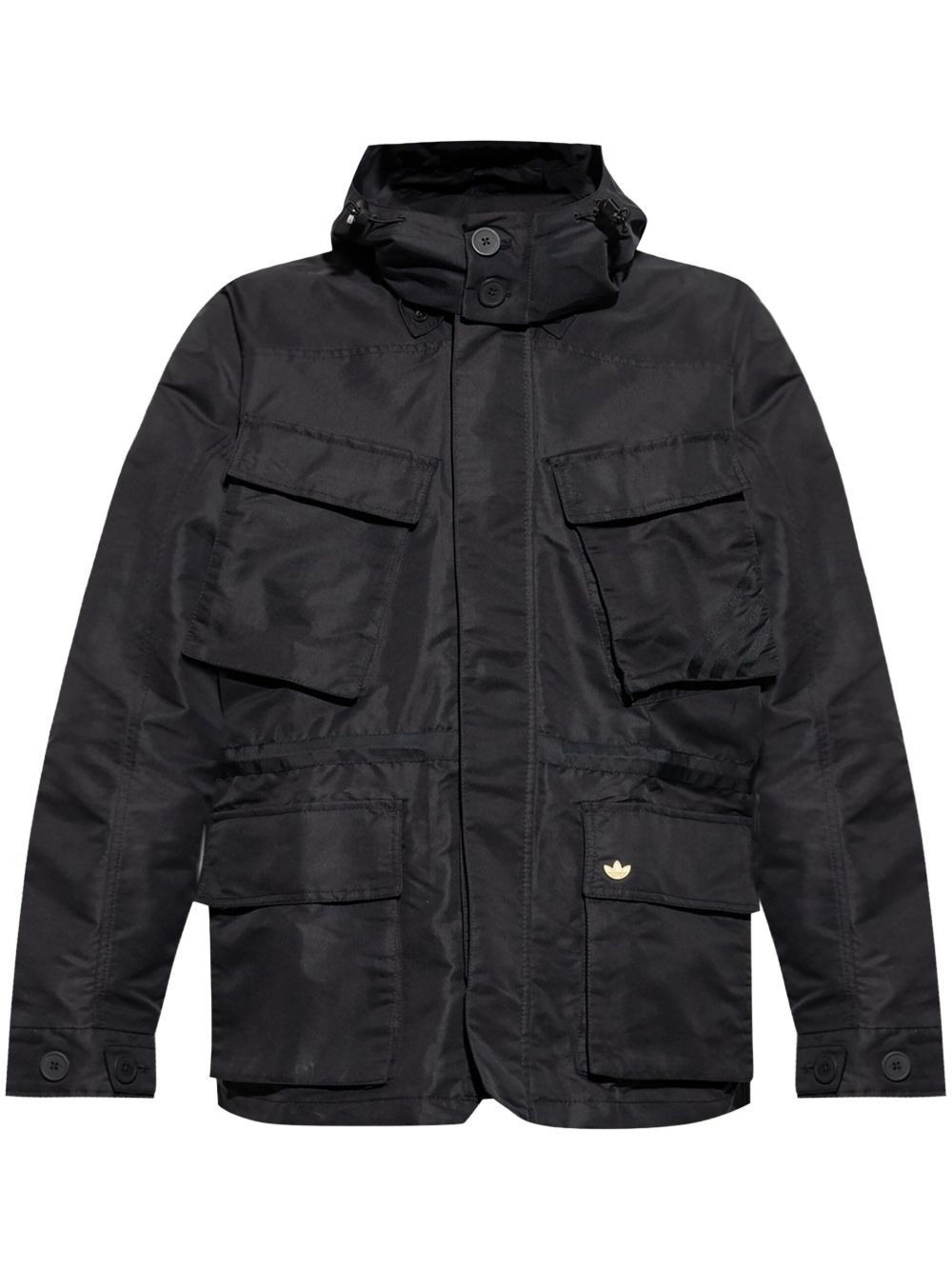 hooded jacket Highlights - Black - Concealed front button fastening - Four front patch pockets - Buttoned-cuff sleeves - Drawstring waist Imported Composition Recycled Polyester 100%