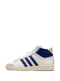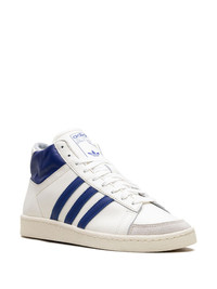 Jabbar Hi "Off White/Collegiate Royal" sneakers Highlights - White - Front lace-up fastening - Two-tone design - Ankle-length - Signature trefoil logo detail - Signature 3-stripes logo - Logo-print tongue - Round toe - Branded insole - Flat rubber sole - These styles are supplied by a premium and authenticated sneaker marketplace. stocking only the most sought-after footwear, they source and curate some of the most hard to find sneakers from around the world. Imported Composition Lining: Fabric 100% Outer: Calf Leather 100% Sole: Rubber 100%