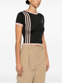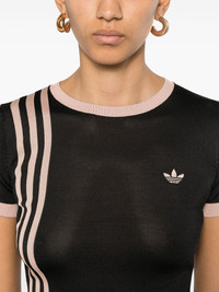 knitted 3-Stripes T-shirt Highlights - Black - Signature trefoil logo detail - Cropped - Contrasting trim Imported Composition Rayon 67%, Recycled Polyester 33% SIZE & FIT Model measurements Height 5 ft 10 in(1.77 m) Bust/Chest 31.88 in(81 cm) Hips 36.22 in(92 cm) Waist 24.01 in(61 cm) FittingInformation Designed for a close fit throughout Made from a midweight non-stretch fabric, this piece offers minimal elasticity when worn