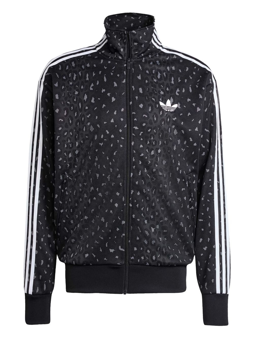 leopard-print zip-up sweatshirt Highlights - Black - Leopard print design - High neck - Zip fastening - Three-stripe detailing - Embroidered logo Imported Composition Recycled Polyester 70%, Cotton 30% Washing instructions Read Manufacturer Guidelines