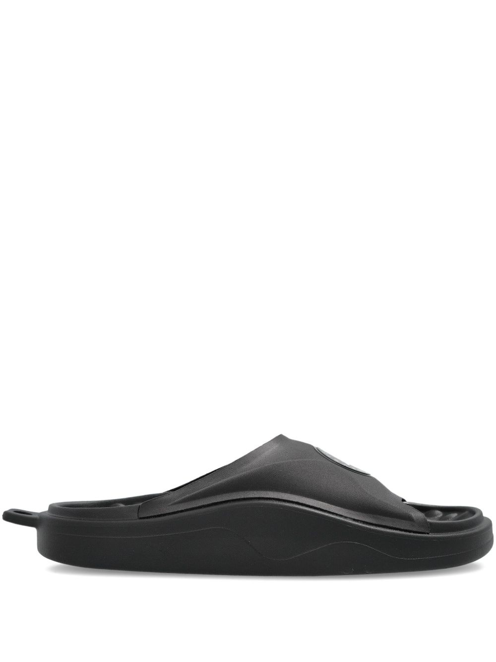 logo-patch slides Highlights - Black - Open toe - Logo detail Imported Composition Sole: Rubber 100% Outer: Mesh 100% Lining: Rubber 100%