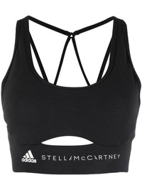 logo-print bralette top Highlights - Black - Recycled polyester blend - Logo print to the front - Signature trefoil logo detail - Scoop neck - Rear criss-cross straps - Cropped - Straight hem Imported Composition Lining: Recycled Polyester 81%, Spandex/Elastane 19% Outer: Modal 65%, Recycled Polyamide 27%, Spandex/Elastane 9% SIZE & FIT Model measurements Height 5 ft 11 in(1.8 m) Bust/Chest 33.07 in(84 cm) Hips 37.4 in(95 cm) Waist 25.19 in(64 cm) FittingInformation This piece fits true to size. We recommend you get your regular size Cut for a close fit Made with a mid-weight stretch fabric