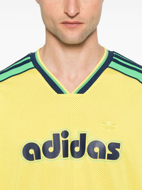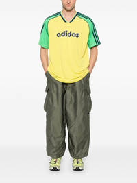 logo-print T-shirt Highlights - Sherbet yellow - Short side slits - Signature 3-stripes logo - V-neck Imported Composition Recycled Polyester 100% SIZE & FIT Model measurements Height 6 ft 2 in(1.87 m) Bust/Chest 37.79 in(96 cm) Hips 37.79 in(96 cm) Waist 30.31 in(77 cm) FittingInformation Designed for a relaxed fit, this piece allows for comfort and movement when worn Made from a midweight non-stretch fabric, this piece offers minimal elasticity when worn Washing instructions Machine Wash
