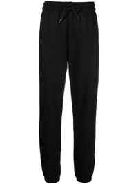 logo-print track pants Highlights - Black - Organic cotton - Logo print to the side - Elasticated drawstring waistband - Two side slit pockets - Elasticated ankles Imported Composition Organic Cotton 100% SIZE & FIT Model measurements Height 5 ft 10 in(1.78 m) Bust/Chest 29.92 in(76 cm) Hips 34.64 in(88 cm) Waist 23.62 in(60 cm) Measurement FRONT RISE 12.59 in(32 cm) INSIDE LEG 28.74 in(73 cm) HIPS 47.63 in(121 cm) WAIST 33.07 in(84 cm) FittingInformation Designed for a relaxed tapered cut, these trousers allow for a close fit at the waist and offer a loose fit at the thighs, with a closer fit toward the ankles The elasticated waist allows for a comfortable fit Made from a midweight non-stretch fabric, this piece offers minimal elasticity when worn This piece fits true to size – take your usual size Washing instructions Machine Wash
