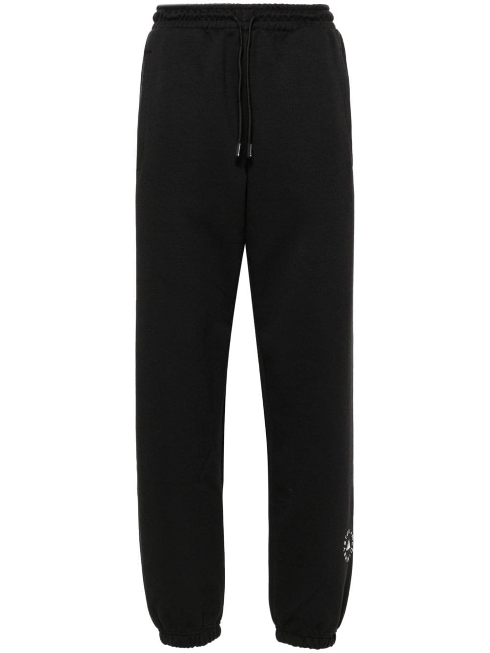 loose sweat trousers Highlights - Black - Organic cotton blend - Jersey texture - Elasticated drawstring waistband - Two diagonal pockets to the sides - Logo print to the front and back - Elasticated ankles Imported Composition Organic Cotton 60%, Recycled Polyester 40% SIZE & FIT Model measurements Height 5 ft 11 in(1.8 m) Bust/Chest 32.67 in(83 cm) Hips 35.82 in(91 cm) Waist 25.98 in(66 cm) FittingInformation Designed for a relaxed tapered cut, these trousers allow for a close fit at the waist and offer a loose fit at the thighs, with a closer fit toward the ankles Adjust this piece’s waistband to your preference using the drawstring Made from a midweight non-stretch fabric, this piece offers minimal elasticity when worn Washing instructions Machine Wash