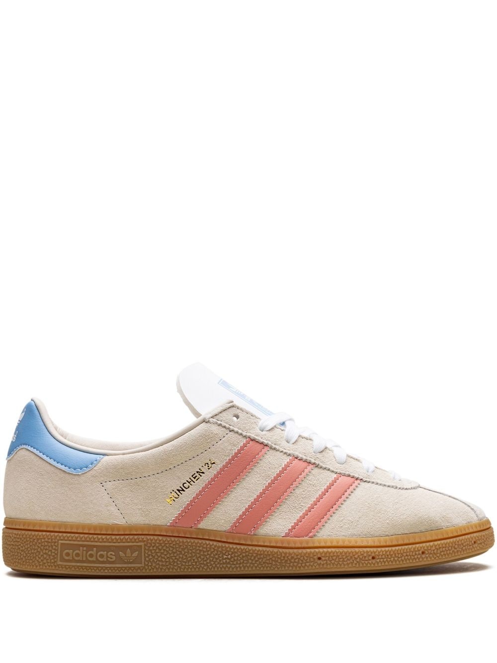 Munchen 24 "Beige" sneakers Highlights - Pink/beige - Calf suede - Logo stamp at side - Signature 3-stripes logo - Contrasting heel counter - Round toe - Front lace-up fastening - Logo-print tongue - Branded insole - Gum-rubber sole - These styles are supplied by a premium and authenticated sneaker marketplace. stocking only the most sought-after footwear, they source and curate some of the most hard to find sneakers from around the world. Imported Composition Sole: Rubber 100% Lining: Fabric 100% Outer: Calf Suede 100% SIZE & FIT Measurement HEEL 0.98 in(2.5 cm) Sole height 0.39 in(1 cm)